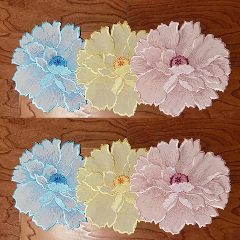 7 Colors Super Flowers Embroidery Placemat Cup Mug Tea Pan Coaster Kitchen Dining Table Place Mat Lace Doily Wedding Drink Pad