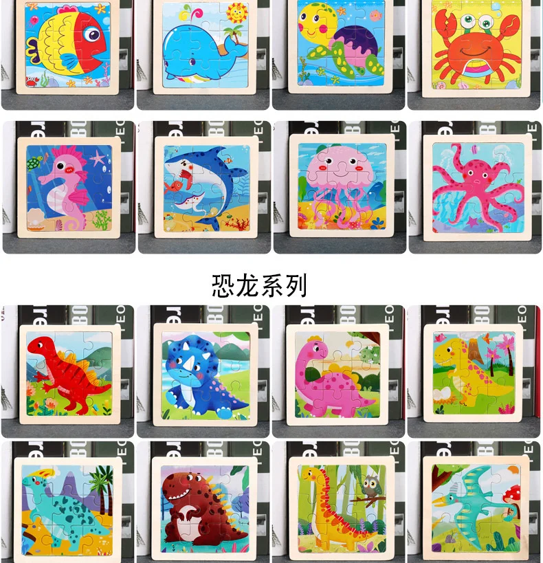 9 Pieces Montessori Wooden Kid Toy 3D Children Education Materials Cartoon Dinosaur Transportation Puzzles Learning Toys