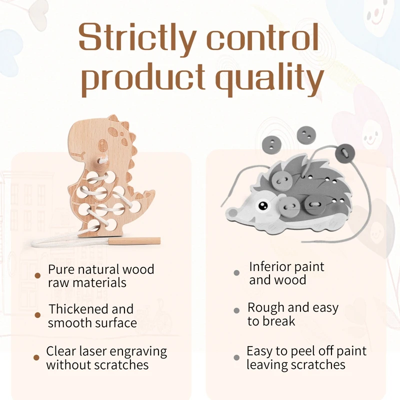 1Set Wooden Dinosaur Threading Board Toys Wood Blocks Fingers Flexible Training Montessori Fine Motor Skills Educational Gift