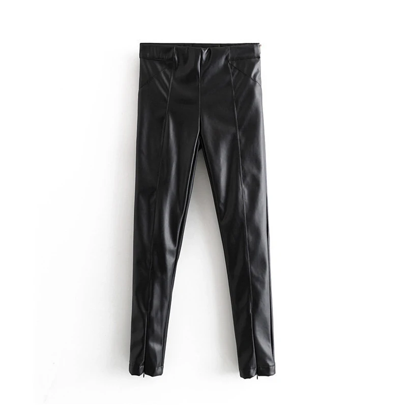 Aachoae Women Stylish PU Faux Leather Stretch Pants 2020 Solid High Waist Ladies Pencil Trousers Full Length Streetwear Bottoms