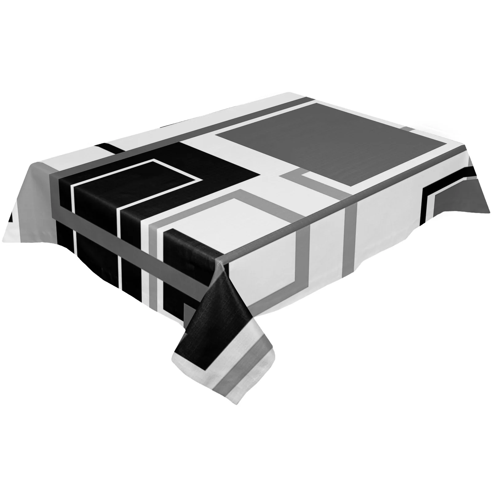 Abstract Geometric Squares Black Grey Tablecloth Waterproof Dining Table Rectangular Round Tablecloth Home Kitchen Decoration