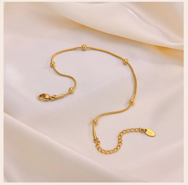 Adjustable Satellite Beaded Ankle Bracelets for Women ,Stainless Steel Summer Beach Foot Chain Stainless Steel Waterproof
