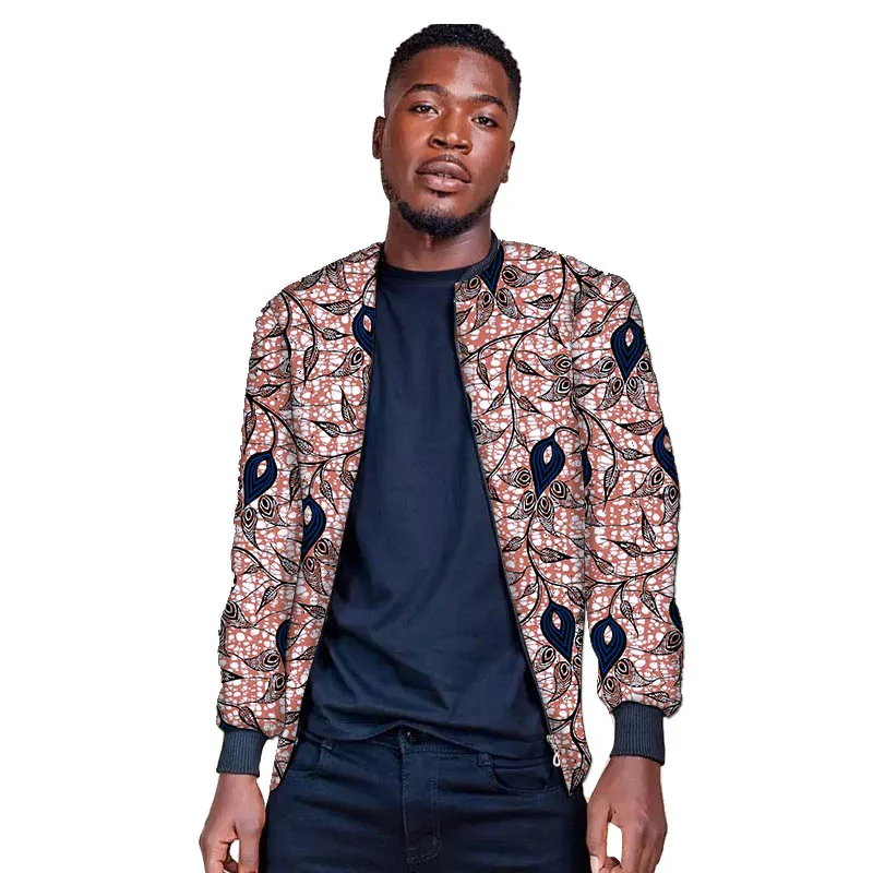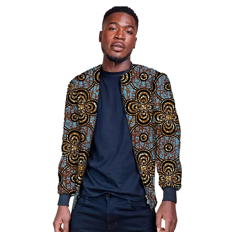 African Print Men’s Bomber Coat Nigerian Fashion Colorful Wax Male Baseball Jacket Shallow Collar Design