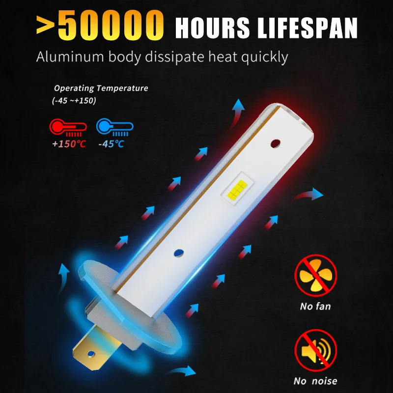 Lamps Led H1 size keep same light position as halogen bulb filament.and ultra-thin only 1mm copper plate ensure perfect beam pattern.wider and longer driver’s eyeviews,No dark spots,No glaring on coming vehicles and its drivers. Gaining safe and comfortable driving exeprience.