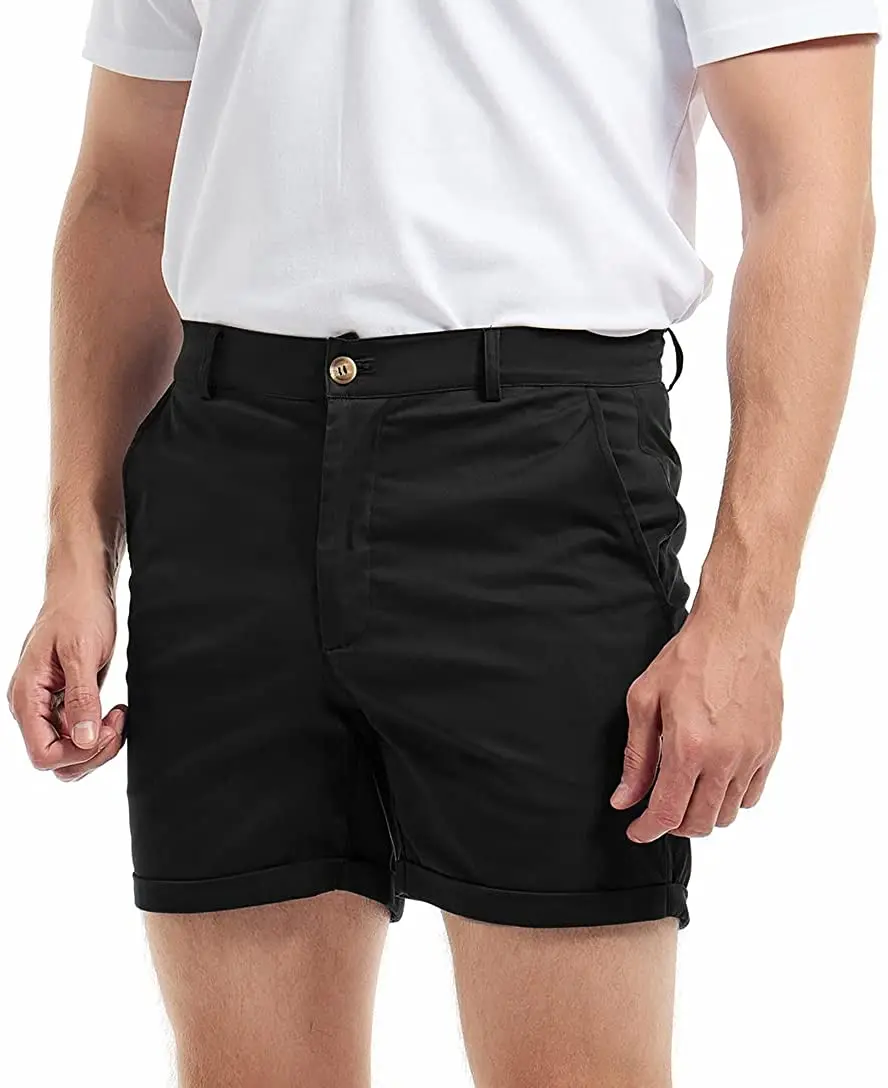 • [About Design]-These chino shorts with zip fly with button closure,two feature front slant pockets and button-through back pockets that will hold all of your stuff.flat front design,even if the waistband is not elastic,these shorts will make sure that you are still comfy.