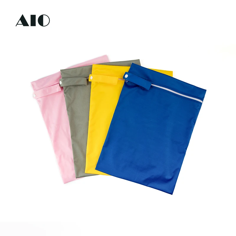 AIO 1Pcs 30*40cm Wet Bags for Baby Diaper Bags Reusable Waterproof Solid Color Wet Dry Diaper Bag Single Pocket Handle Bags
