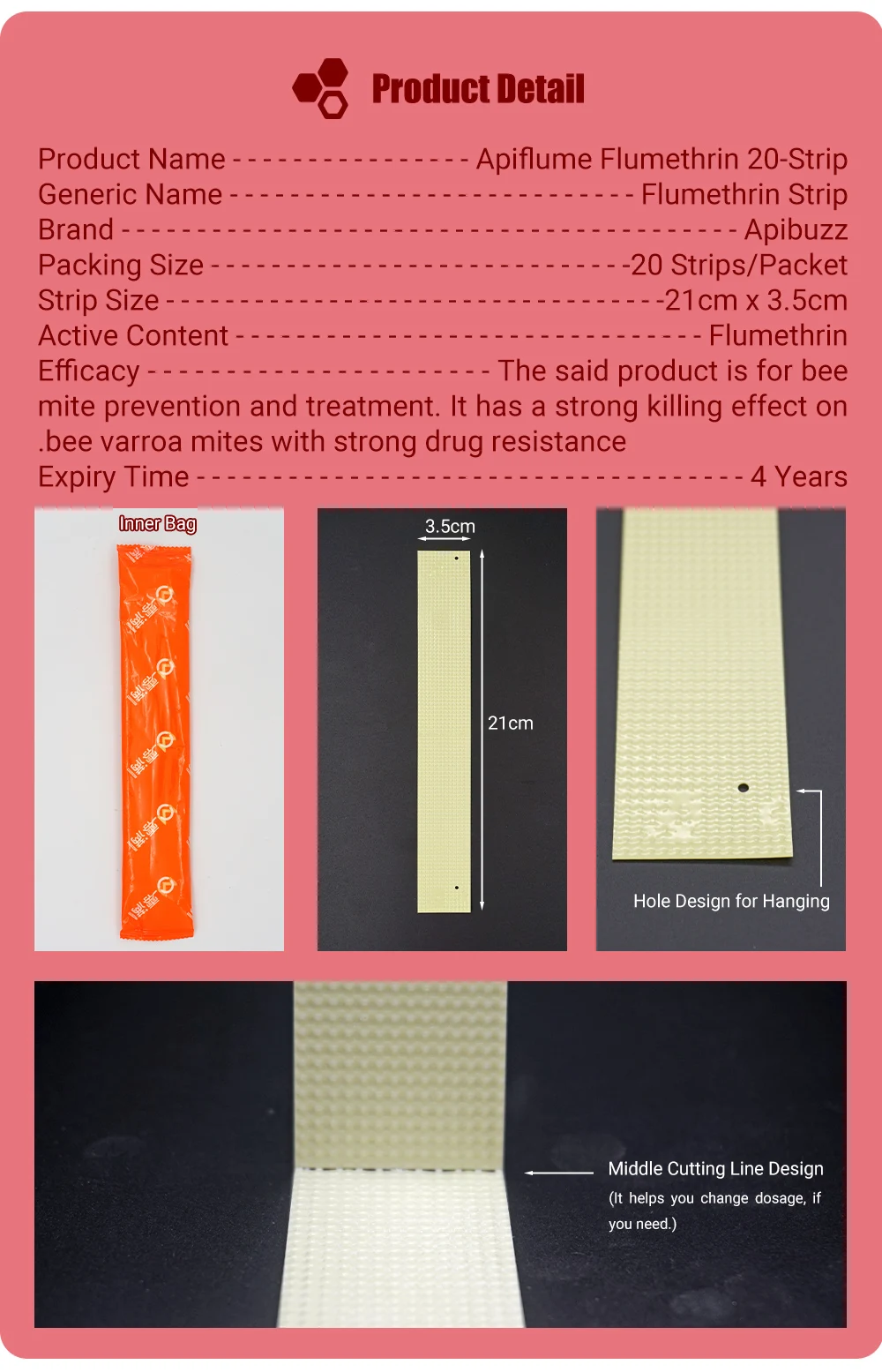 Apibuzz Apiflume 20-Strip Beekeeping Flumethrin Strips Varroa Mite Control for Bees Bee Keeping Equipment Apicultura