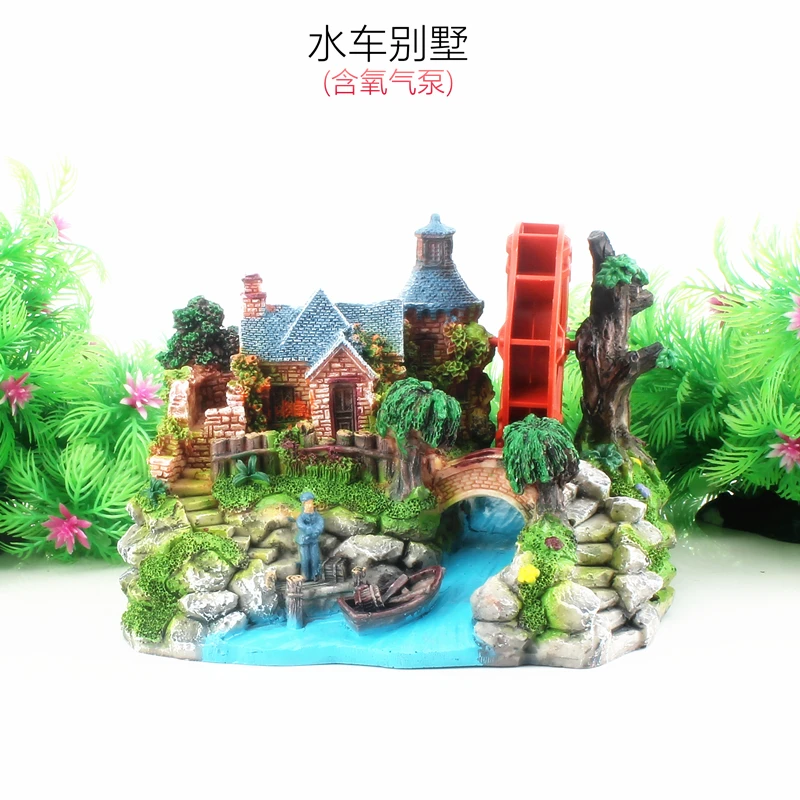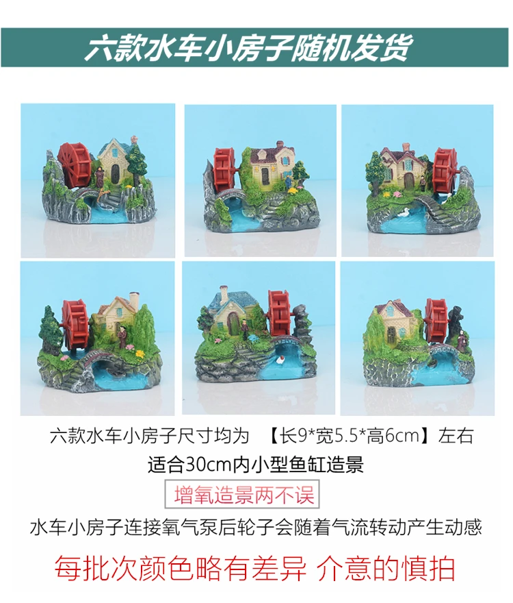 Aquarium Landscaping Fish Tank Decorations Small Ornaments Simulation Small House Windmill Air Pump Can Turn The Waterwheel