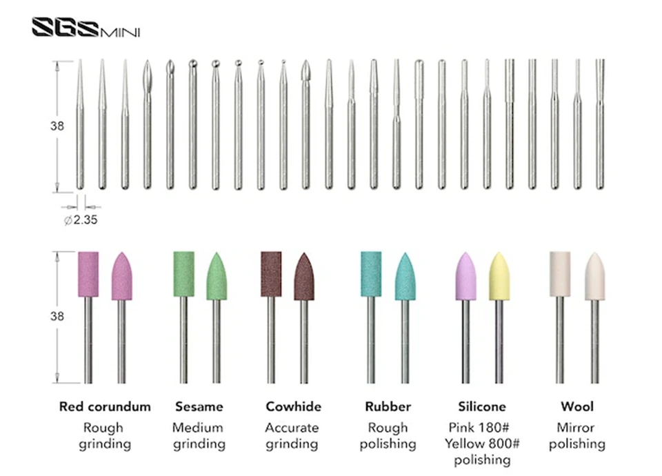 12 polishing bits, all sitting inside their organizer trays for a nice space-saving experience.