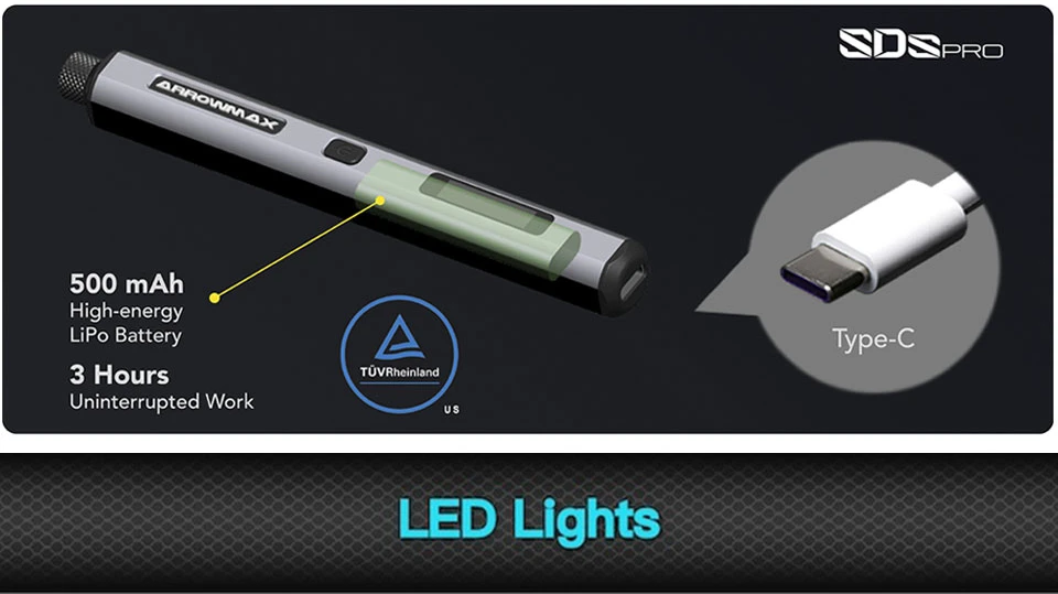 And unlike any mini drill, the SDS Pro has four shadow-less LED lights that let you see your target more clearly.