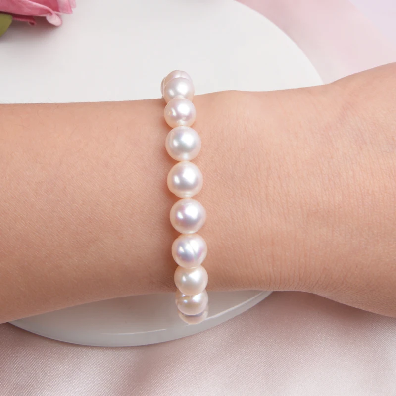 ASHIQI Genuine Natural Freshwater Pearl Bracelets Bangles For Women with Classic Fashion White Pearl Jewelry Gift