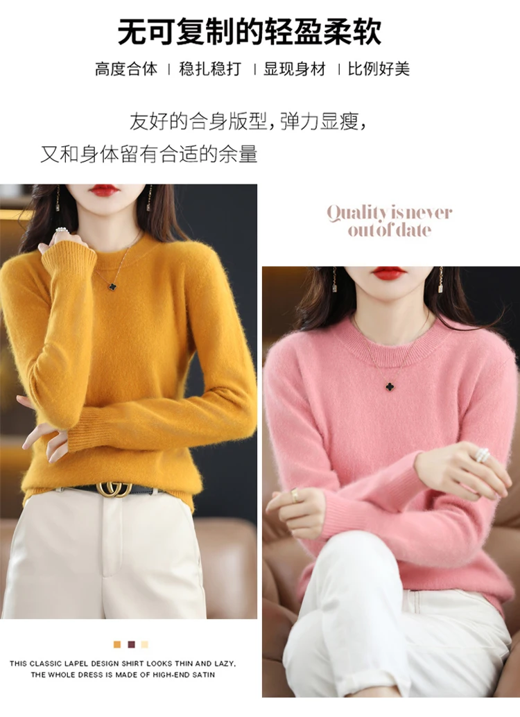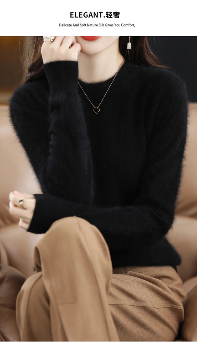 Autumn and Winter New Women’s 100% Mink Cashmere Sweater O-Neck Knitted Pullover Casual Loose Large Basic Fashion Top