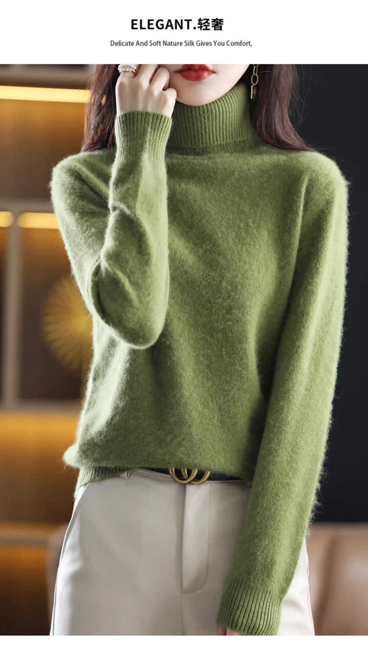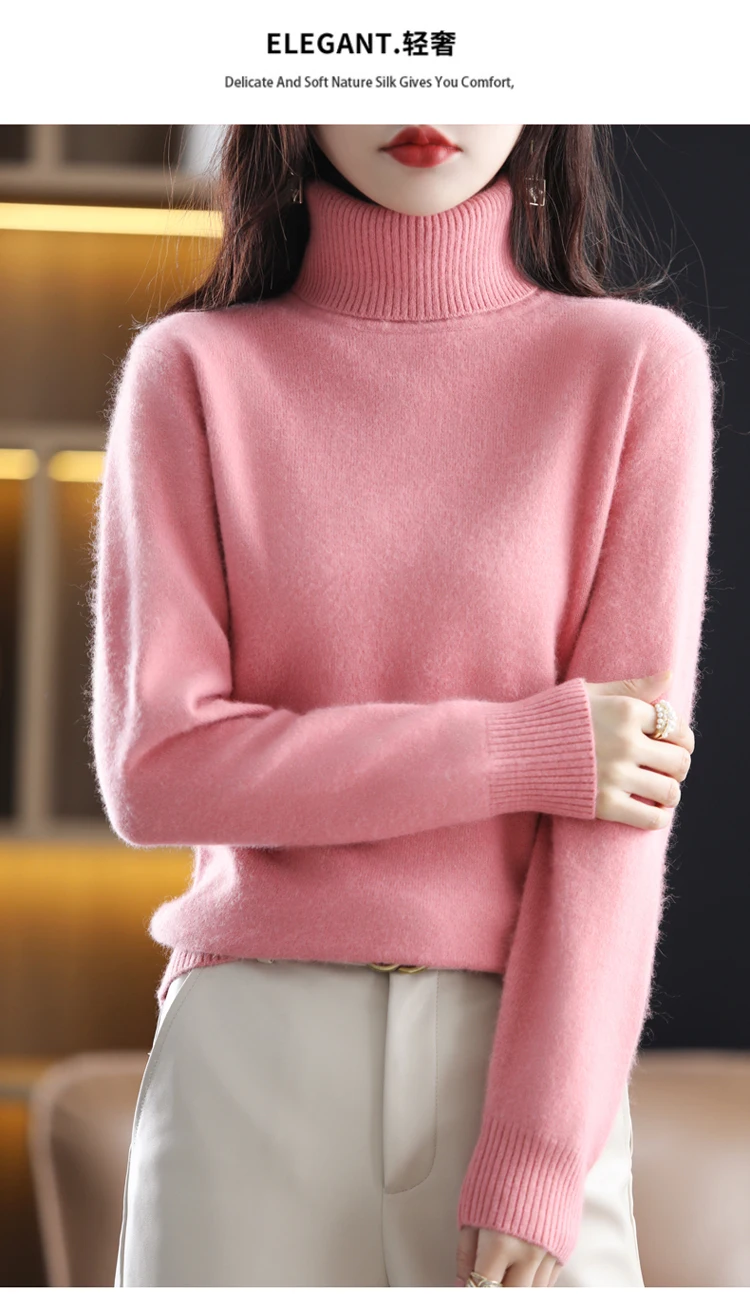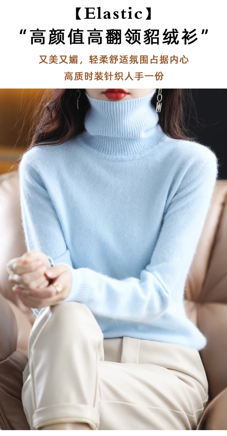 Autumn and winter women’s high neck pullover 100% pure mink cashmere sweater knitted soft fashion warm women’s clothing