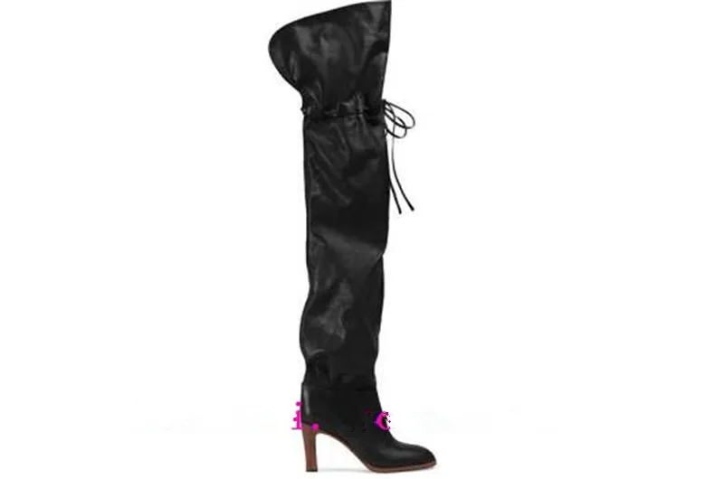 Autumn Winter Newest Slim Fit Red Leather Thigh High Boots Strap Long Spike High Heel Designer Plush Botines Shoes Woman 2023