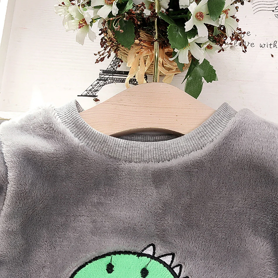 Baby Boy Warm Dinosuar Clothing Set Winter Cartoon Pajamas Outfit for Girls Pleuche Sweater Pants 2pcs Kids Suit 1-6Y