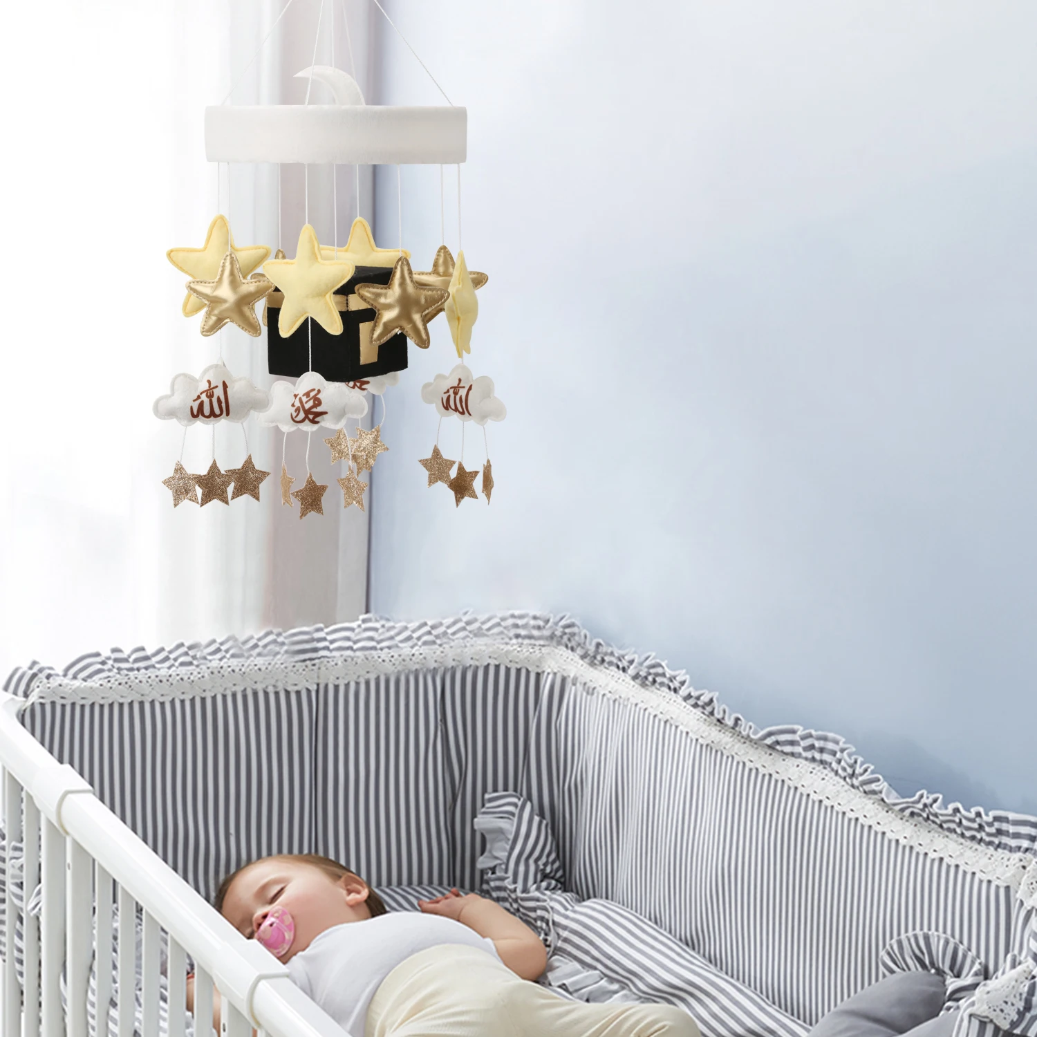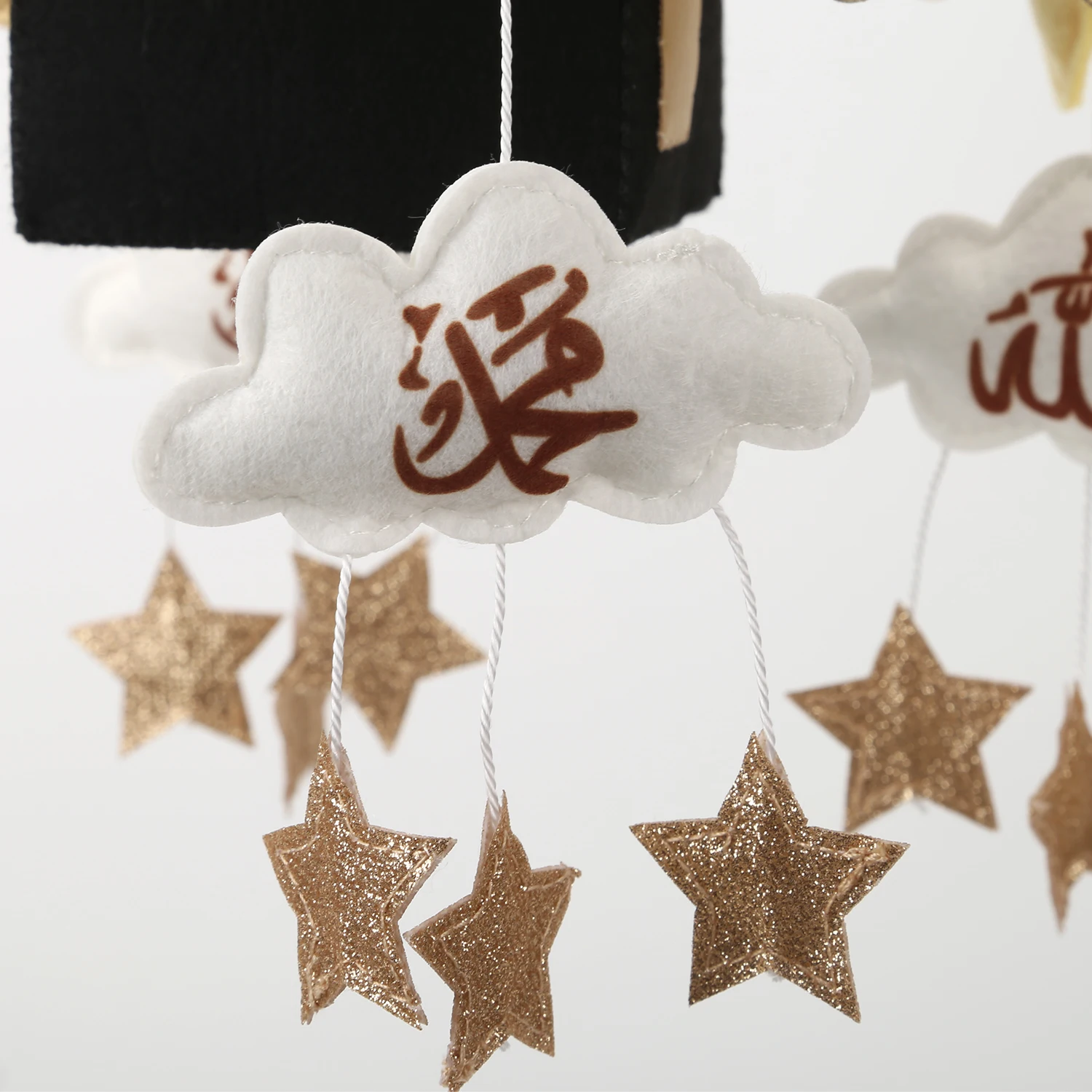Baby Cot Mobile Kaaba golden moon star felt cube nursery decor Islamic cot mobile