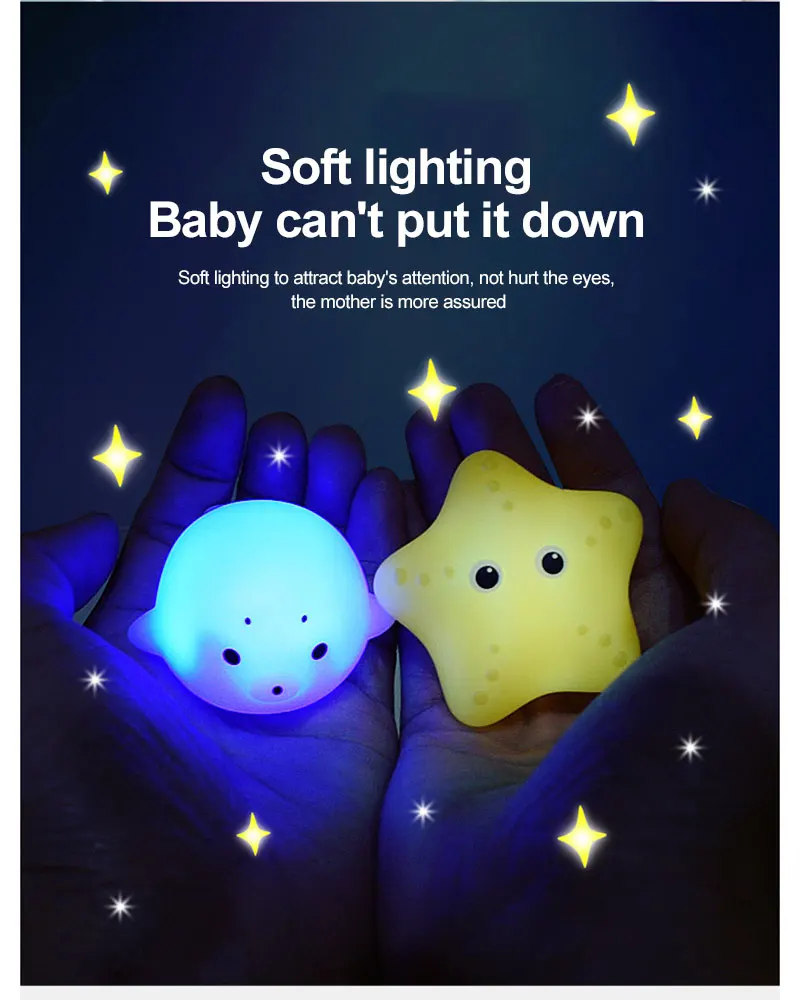 Baby Cute Animals Bath Toy Swimming Water LED Light Up Toys Soft Rubber Float Induction Luminous Frogs for Kids Play Funny Gifts