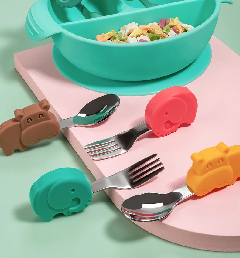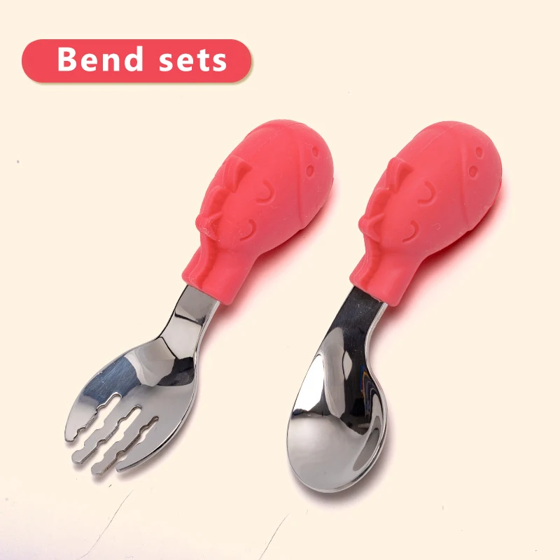 Baby Gadgets Tableware Set Children Utensil Stainless Steel Toddler Dinnerware Cutlery Cartoon Infant Food Feeding Spoon Fork