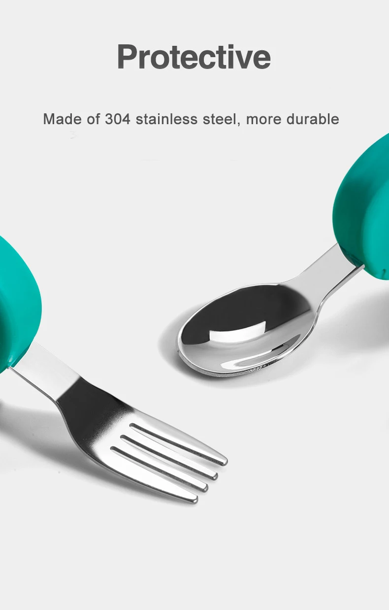 Package:1pcs*baby spoon + 1pcs*fork set in opp bog