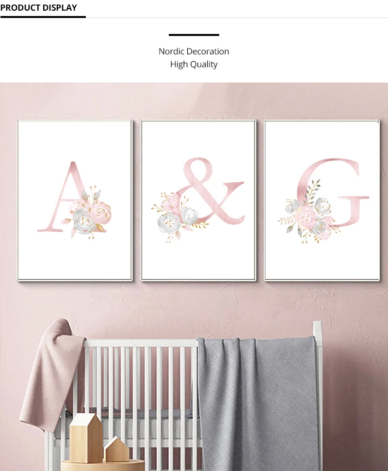 Baby Posters Personalized Girl’s Name Custom Poster Nursery Prints Pink Flower Wall Art Canvas Painting Pictures Baby Room Decor