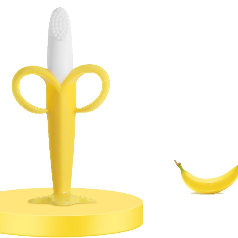Banana Shape Baby Silicone Training Toothbrush BPA Free Safe Toddle Teether Chew Toys Teething Ring Gift Infant Baby Accessorie