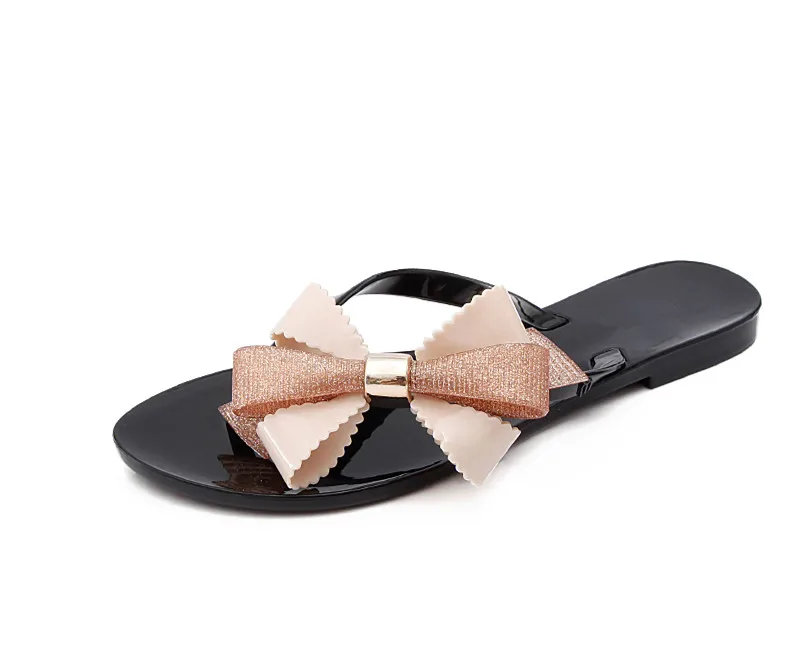 BEYARNE Korean style Fashion woman jelly beach sandals lady flip flops flat rain slides bowtie women summer Slippers shoes 36-41