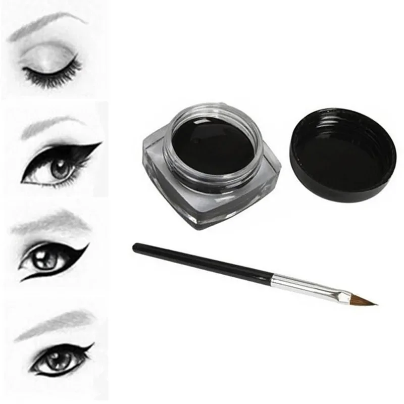 Black Eyeliner Cream Waterproof Beauty Cosmetics Long Lasting Eyeliner Gel Eyeshadow Makeup Tools with Brush Set Eye Liner