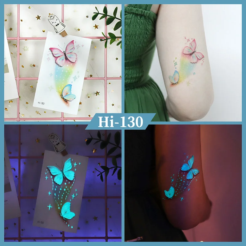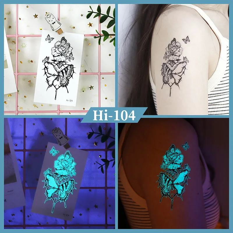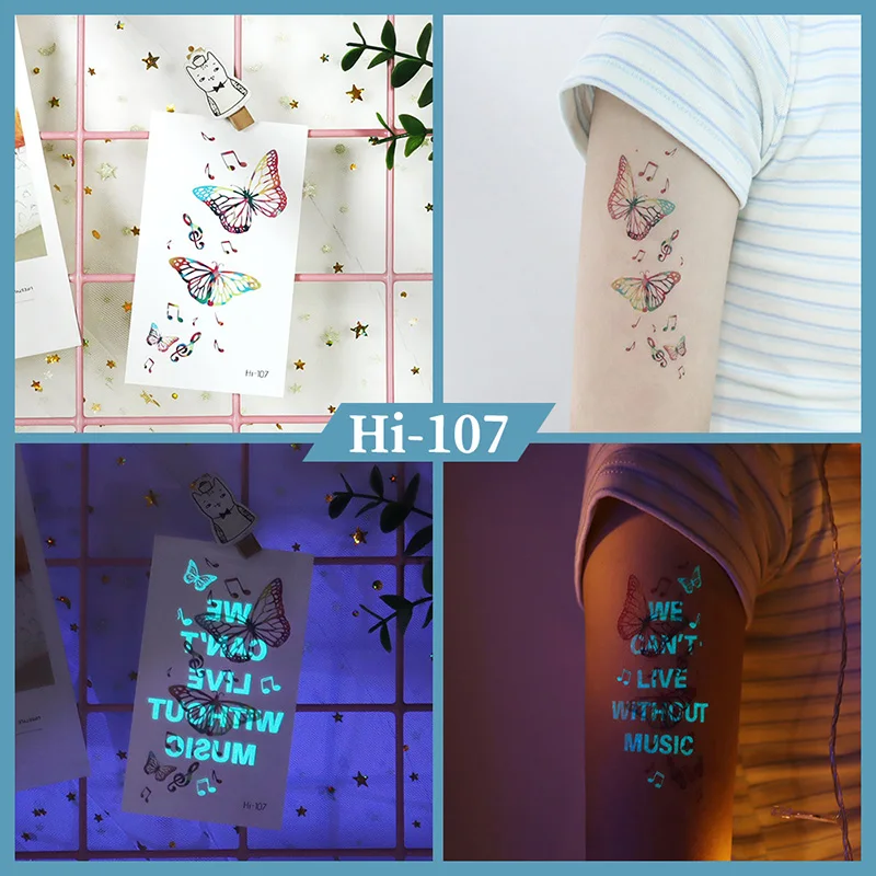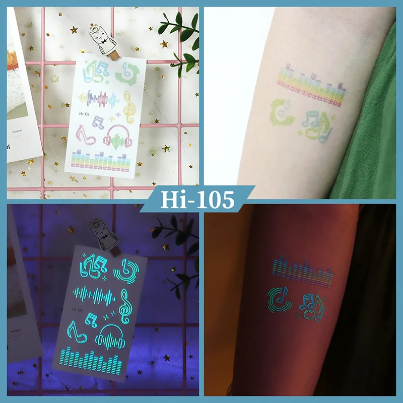 Blue Luminous Tattoo Sticker Glowing Waterproof Wrist False Sticker for Body Art Women Men Nightclub Bar Music Festival Party