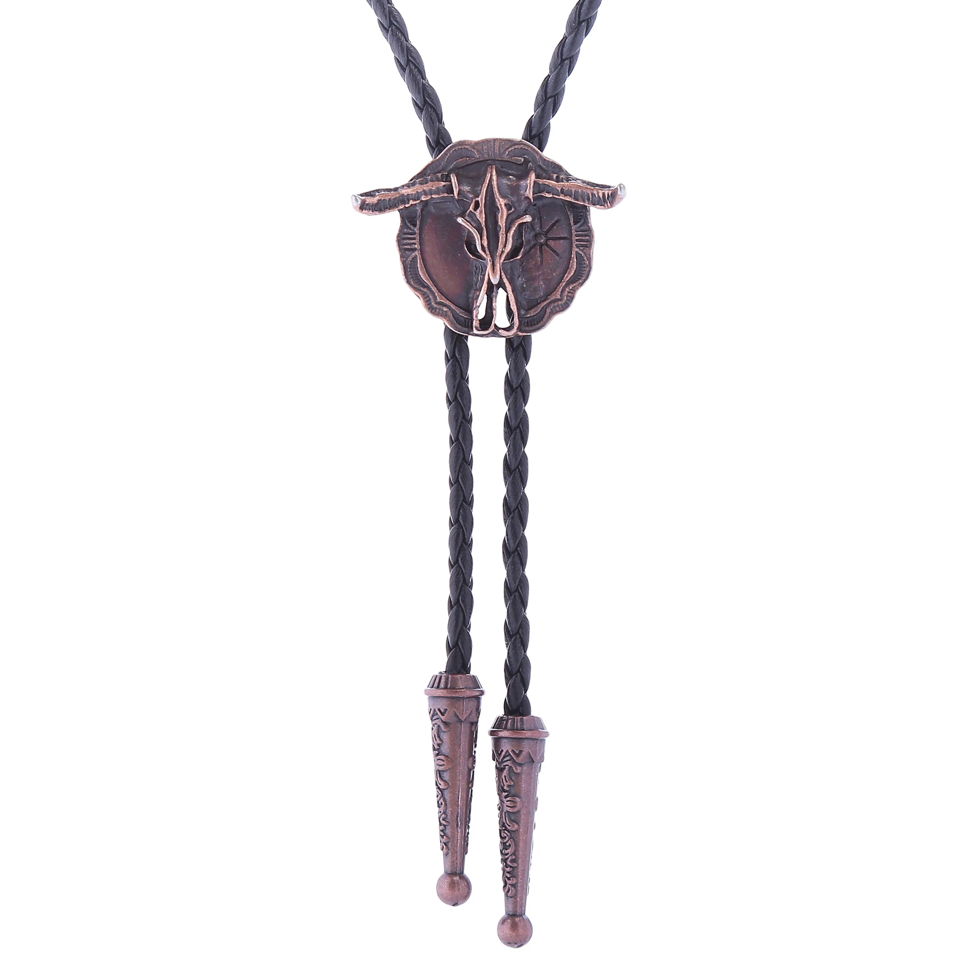 Bolo tie Retro Bull Head Shirt Chain Bison Cow Poirot tie Rope Leather Necklace
