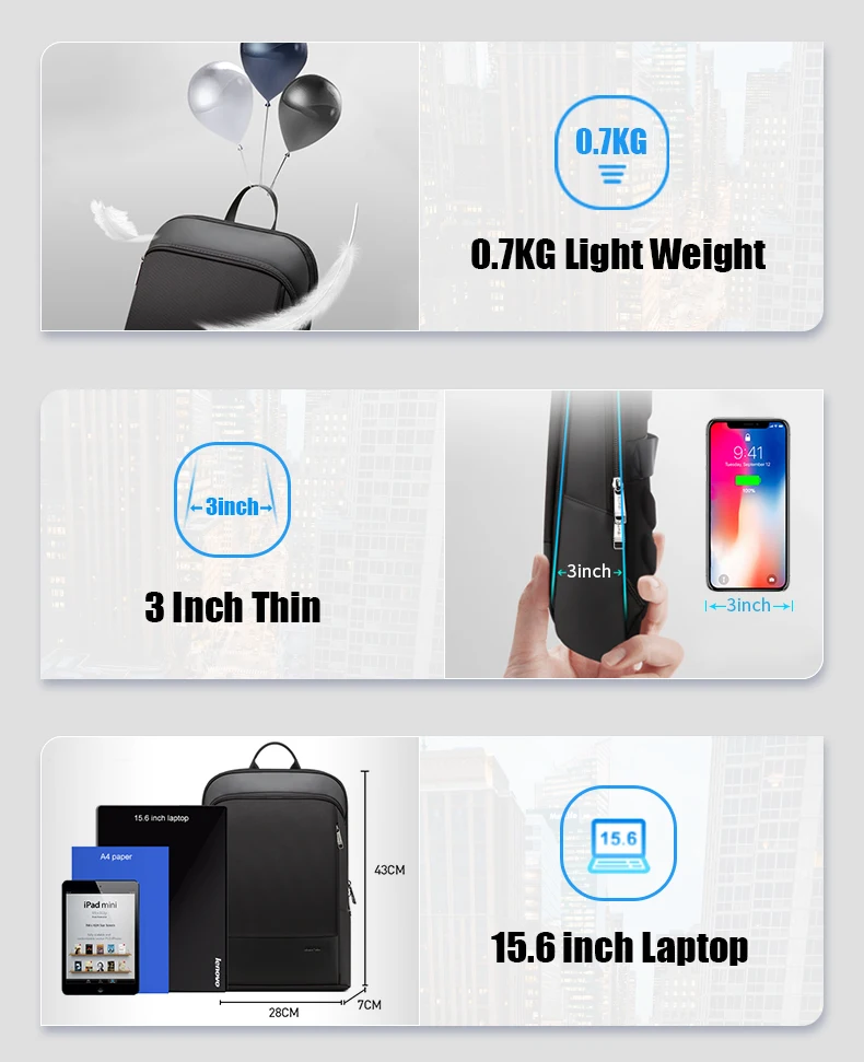 BOPAI Men Backpack Slim Laptop Backpack for 15.6inch Fashion Office Waterproof Business Backpacksfor Women Ultralight Mochila