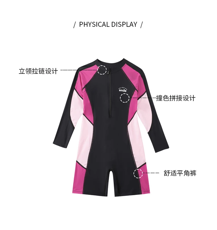 Boy Girl One Piece Swimsuit Long Sleeves Solid Grey Patchwork Teenager Boy Girl Swimwear Kids Bathing Suit Beach Wear 3-16 Years