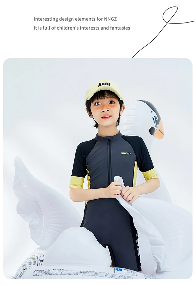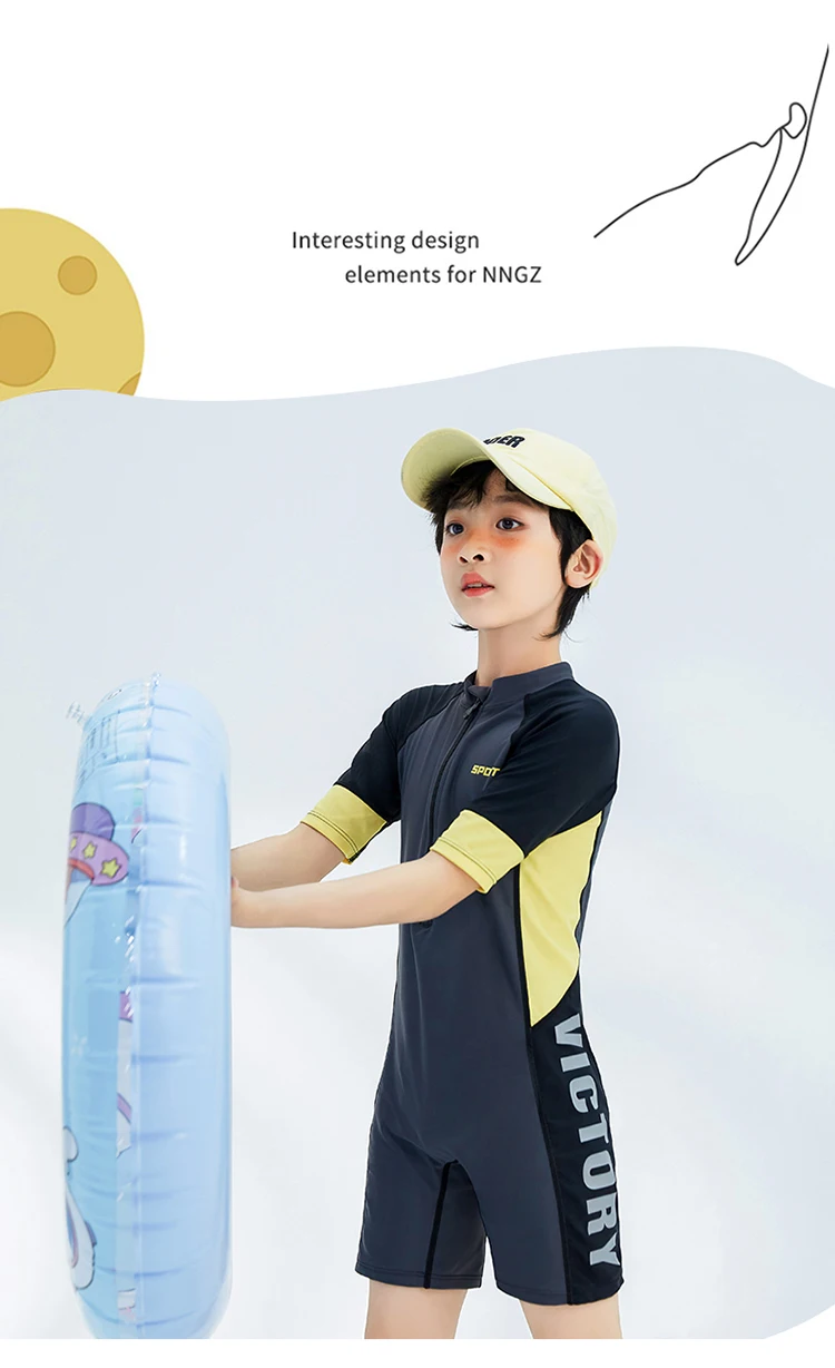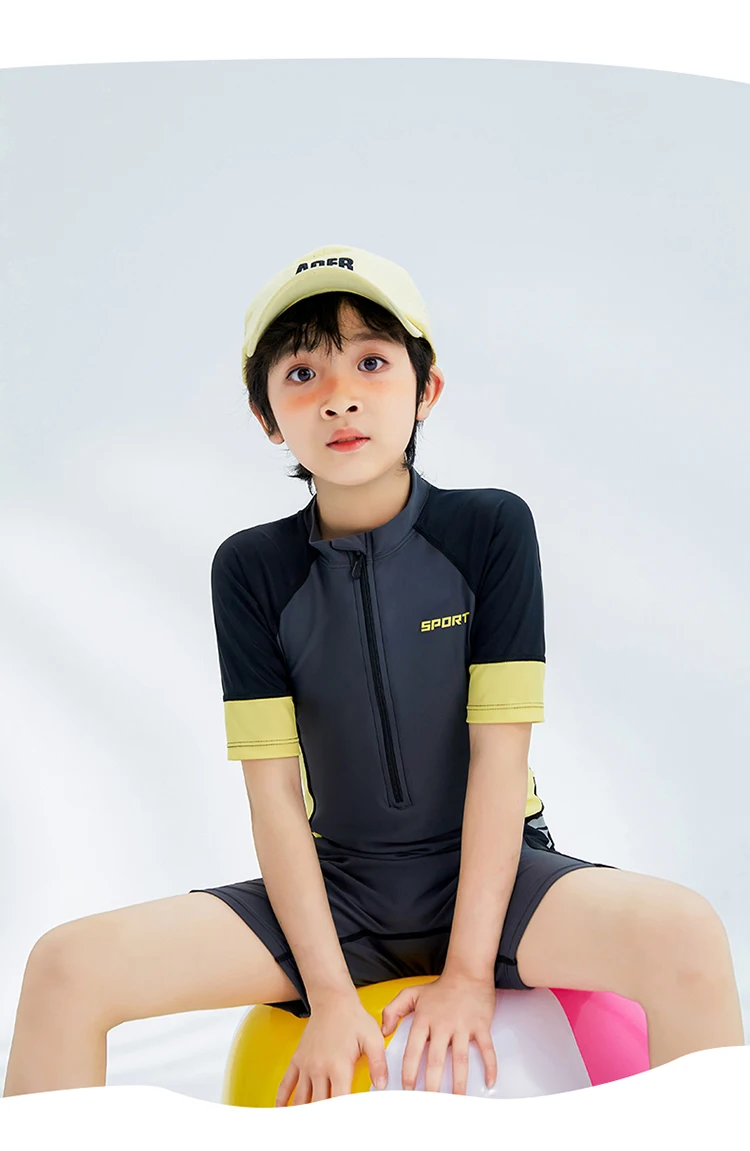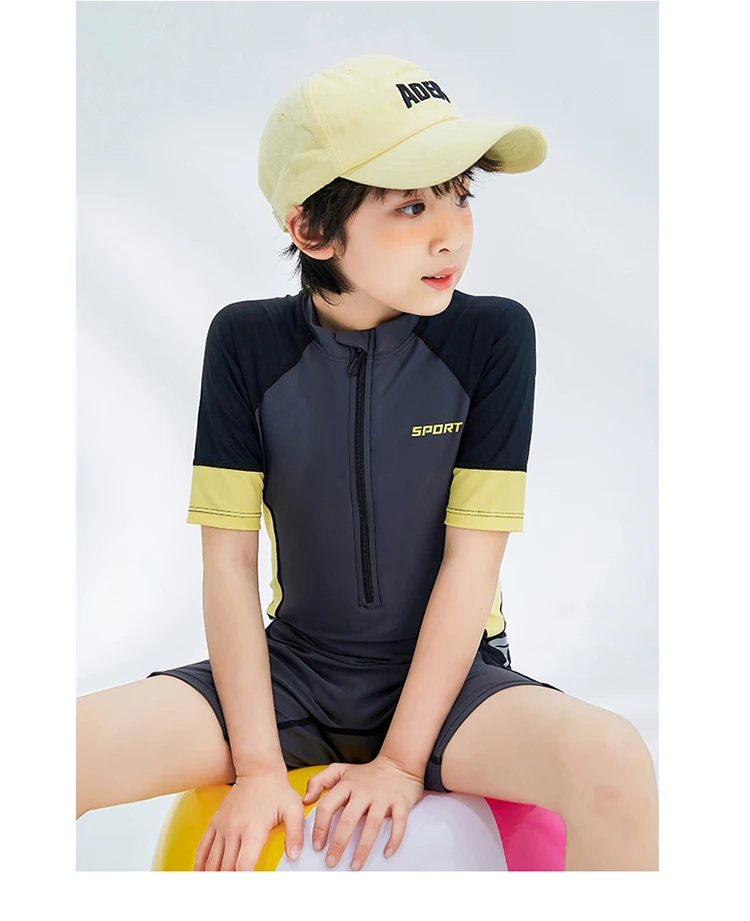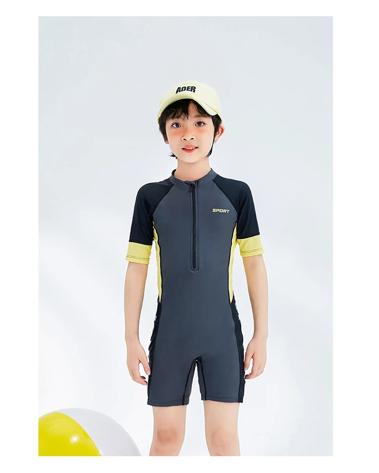 Boyl’s One Piece Swimsuit Solid Grey Patchwork Teenager Boy Swimwear Kids Bathing Suit Beach Wear 3-16 Years