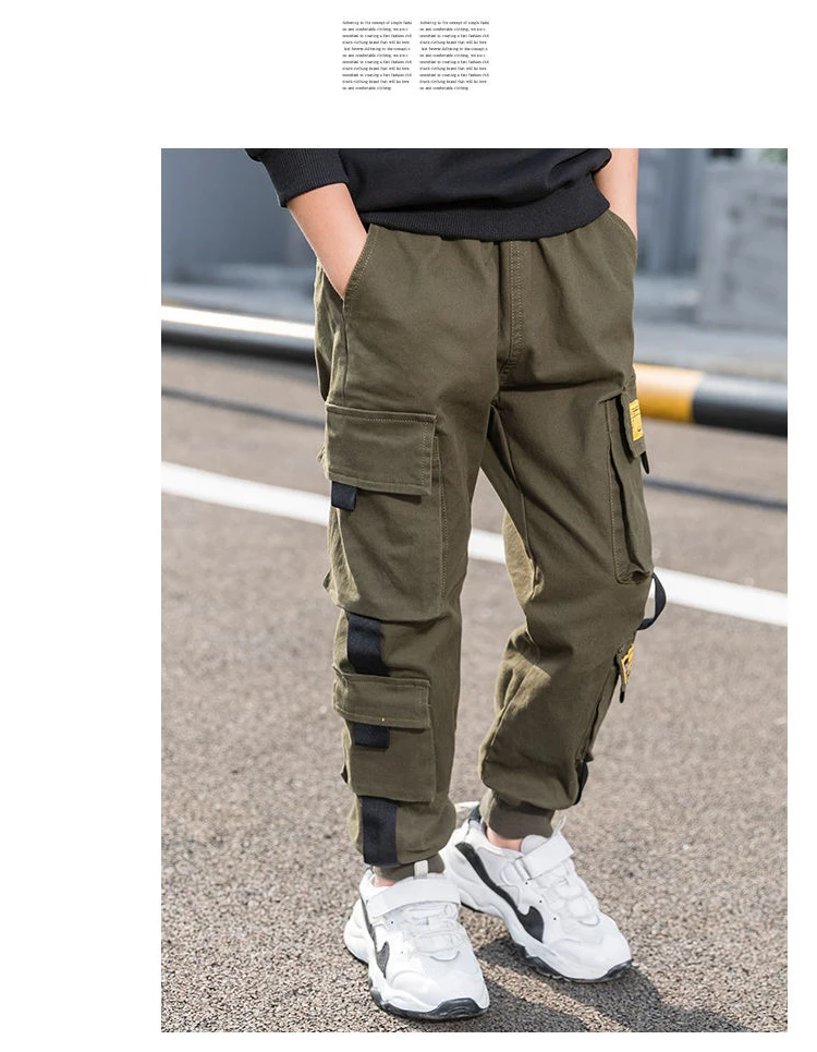 Boys Pants Boys Pants Solid Cargo Pants Teenage Boy Multi-Pocket Trousers Kids Spring Autumn Boys Casual Pants Streetwear
