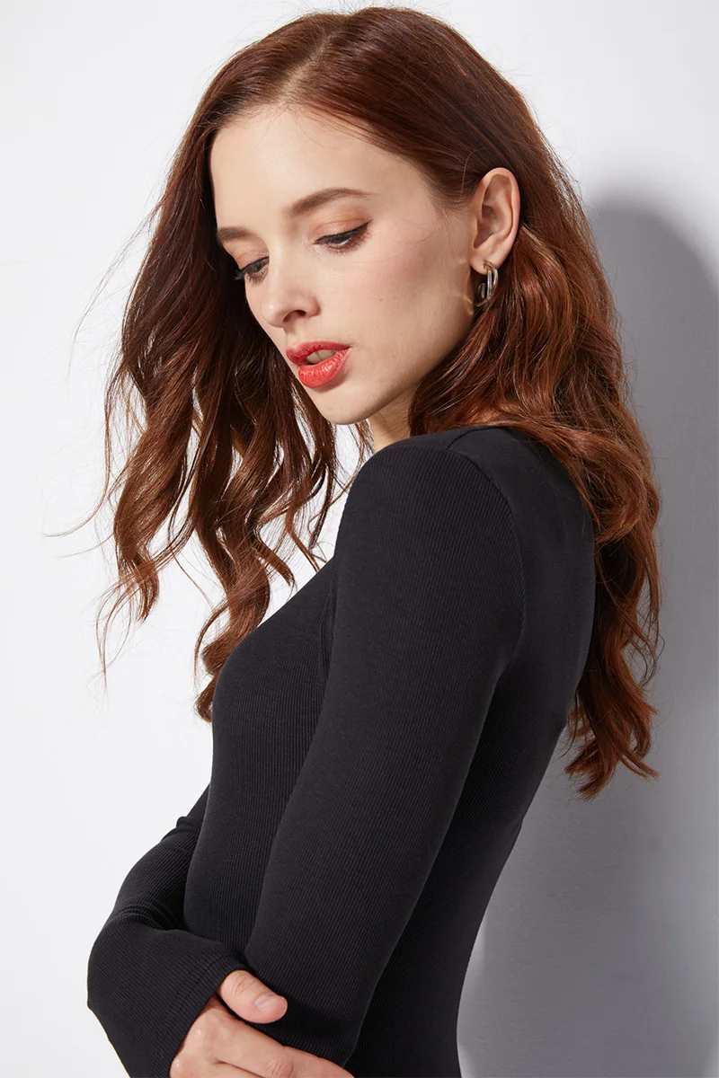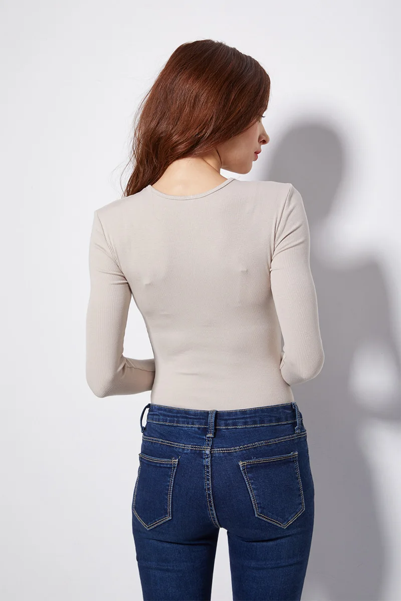 BRADELY MICHELLE 2019 Autumn Pure Cotton Sexy Women Slim Long-Sleeve O-neck Tops Bodysuits female rompers streetwear Jumpsuits