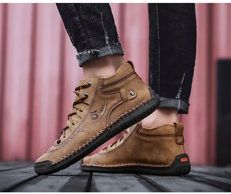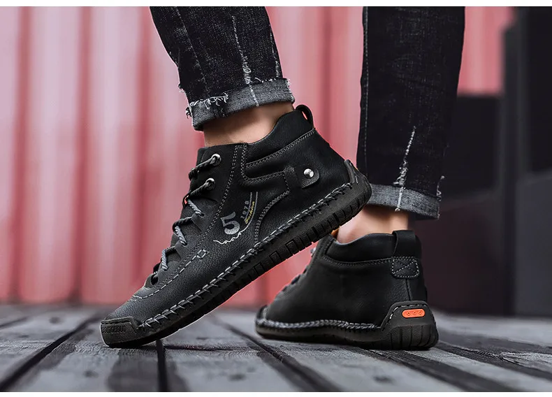 Brand Comfortable Men Ankle Boots Quality Split Leather Shoes Men’s Snow Boots Winter Shoes Warm Fur Men’s Boots Big Size 39-48