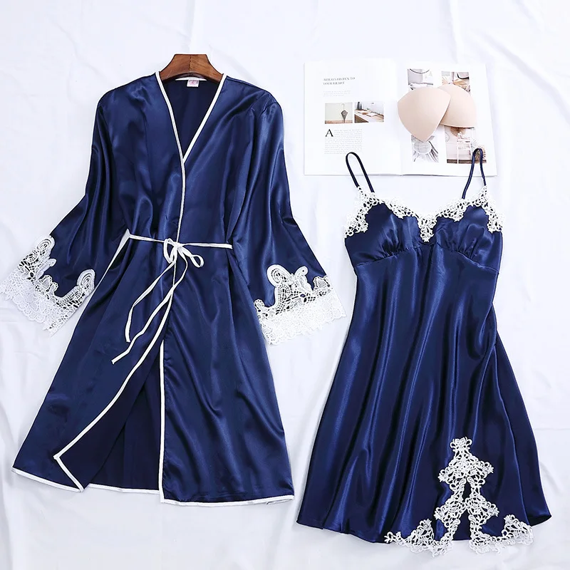 Bride Bridesmaid Wedding Robe Sexy Satin Intimate Lingerie Women Kimono Bathrobe Gown 4PCS Sleep Suit Casual Sleepwear Nightwear