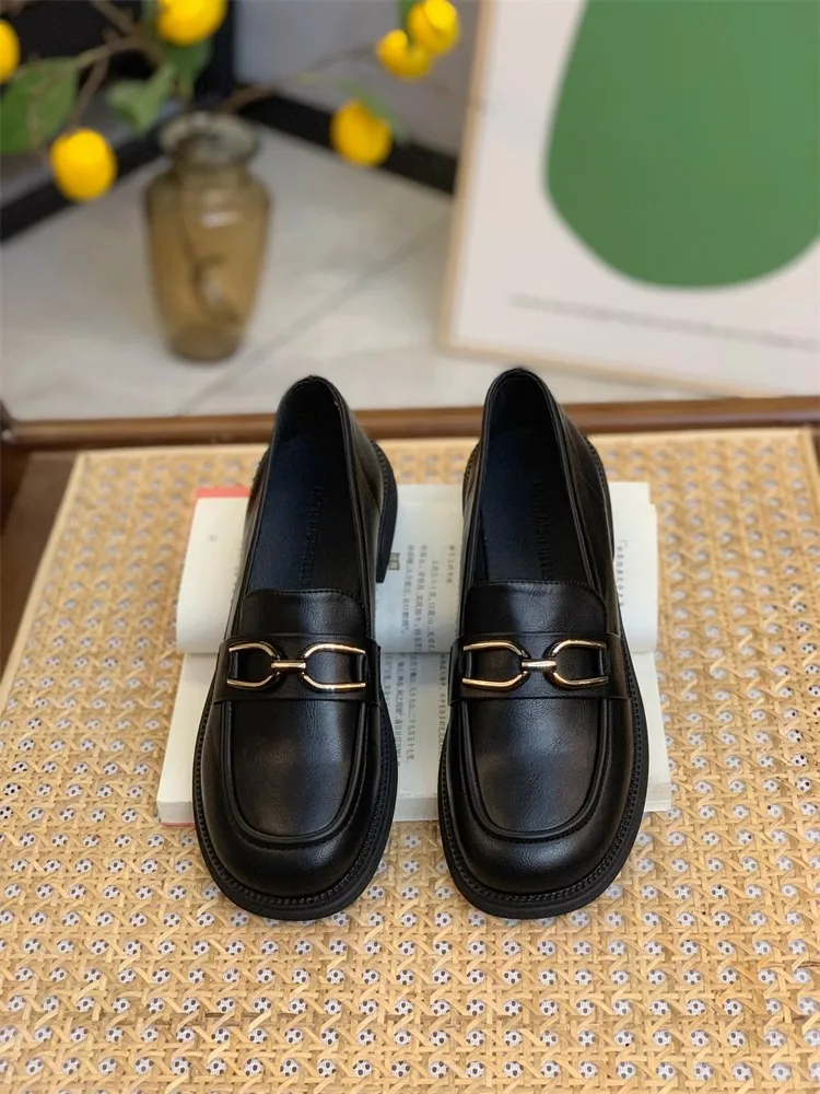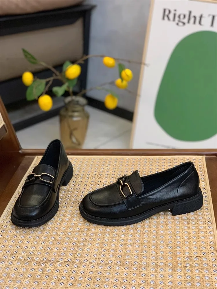 British style small leather shoes for women in the spring of 2024 a new style of a slip-on flat soft sole single shoes