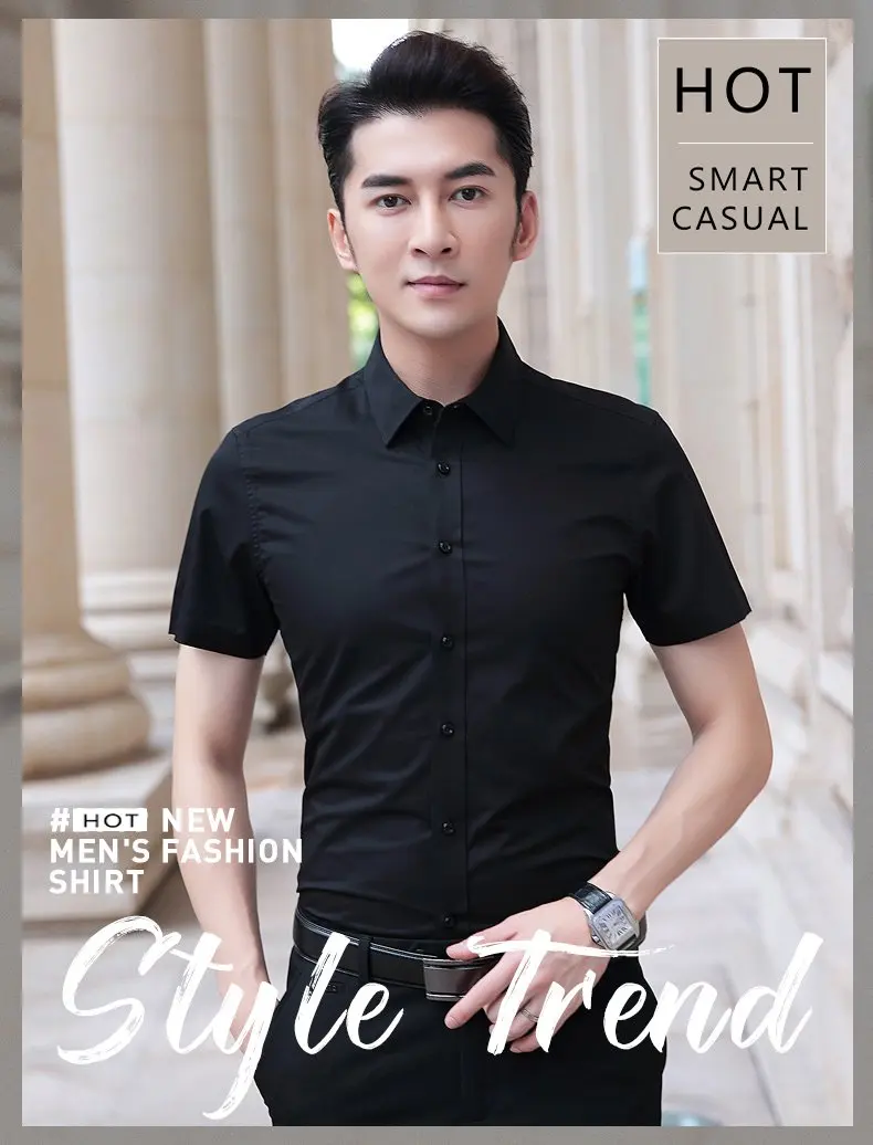 BROWON Men Summer Shirt Short Sleeve Solid Color Slim Fit Business Mens Shirts Casual Slim Fit Men Clothes 2019