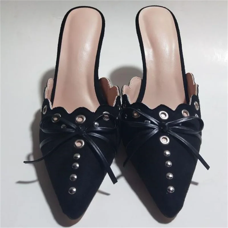 Butterfly-knot Ladies Shoes Designer High Heels Pointed Toes Mules Studs Sandals Femme Bow-tied Sandalias Hollow Zapatos Mujer