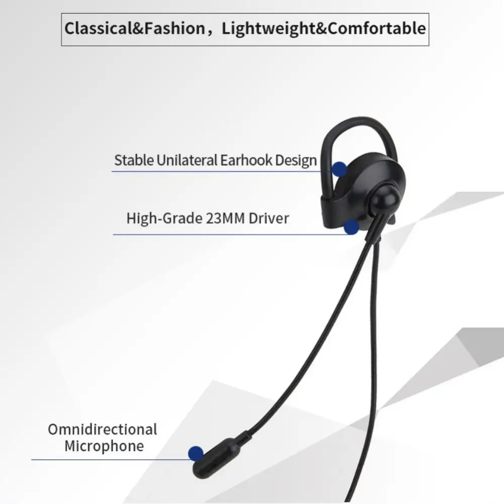 3.Unilateral Earhook Design: Specially unilateral ears hook design makes the headset more humanized, which is suitable for the persons want to hear the environment sound.