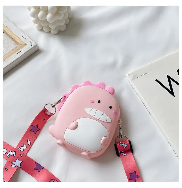 Cartoon Dinosaur Crossbody Bag Children Silicone Phone Pouch Shoulder Bags Satchel Girls Lovely Purse Animal Handbags Wallets