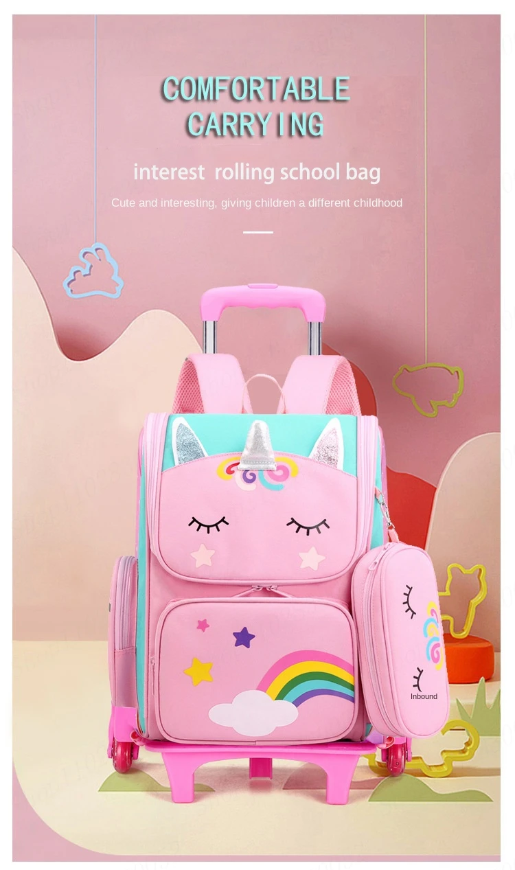 Cartoon School Backpack Child Rolling Trolley Bag with Wheels School Bags for Girls Lightweight Student Book Bag Kids Backpacks