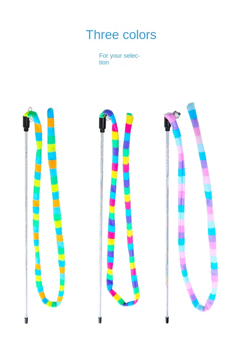 Cat Toys Rainbow Stripes Funny Cat Stick with Bell Interactive Play Pet Supplies Cat Toys Interactive Cat Toy Worm on A String