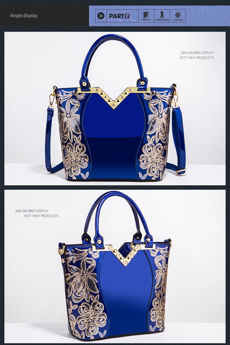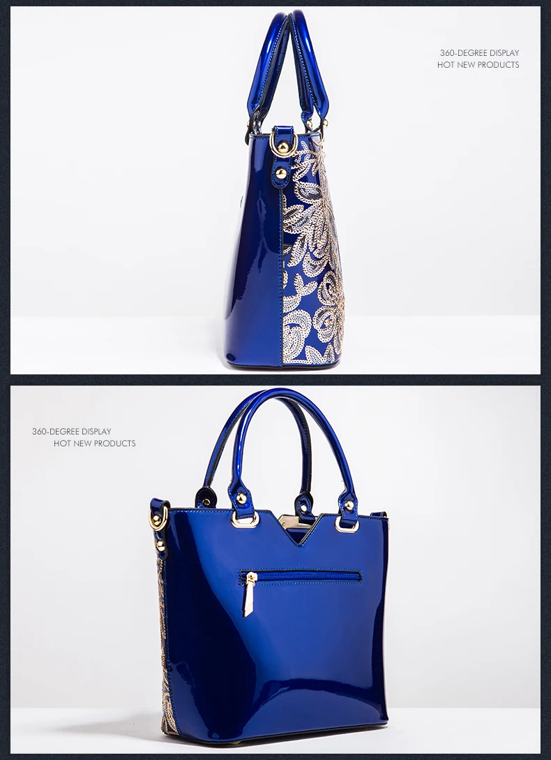 Ceossman Luxury Women Patent Leather Handbags Sequin Embroidery Shoulder Crossbody Bag Famous Brand Designer Lady Messenger Tote