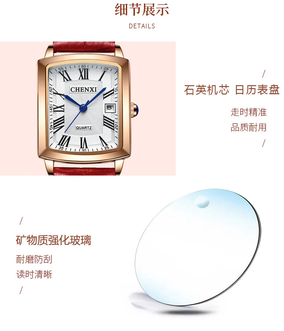 Chenxi 079A Square Women Ladies Fashion Leather Waterproof Quartz Watch