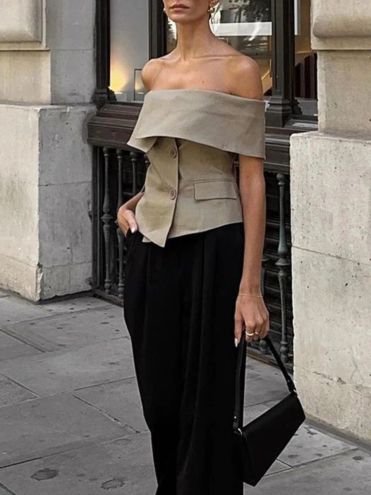 CHICEVER Solid Slim Coats For Women Slash Neck Short Sleeve Patchwork Button Folds Temperament Jacket Female Summer Clothing New