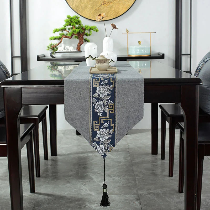 Chinese Style Table Runner Luxury Cotton Linen Jacquard Embroidered CoffeeTable Runners Decorative Bed Runner Table Flag Hotel