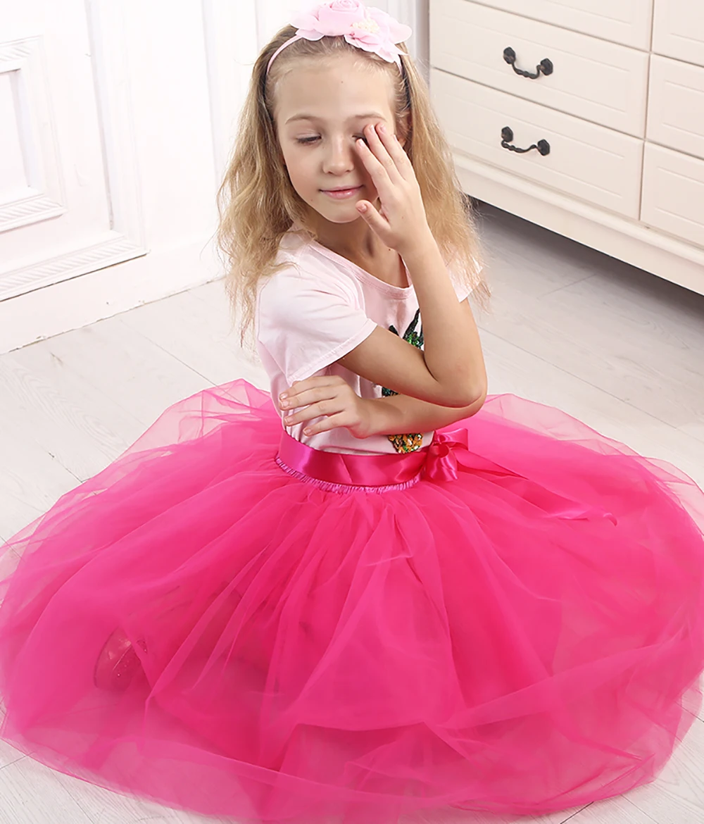 Christmas Tulle Girls Skirts Princess Tutu Long Skirts Elastic Waistband Chiffon Kids Ball Gown Girls Clothes Children Clothing
