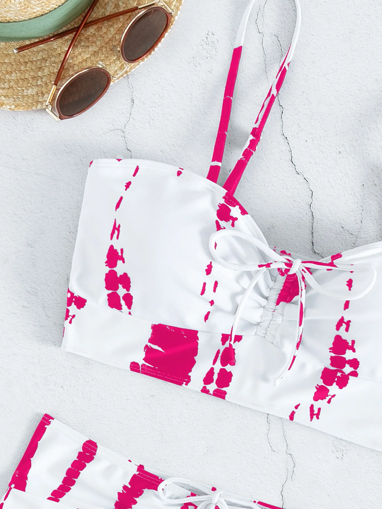 Cikini-Women’s High Waist Lace Up Printed Swimsuit, Summer Beach Bikinis Set, Bathing Suit for Women, New, 2022