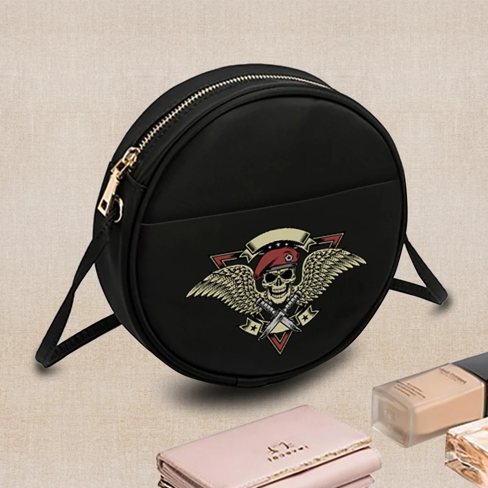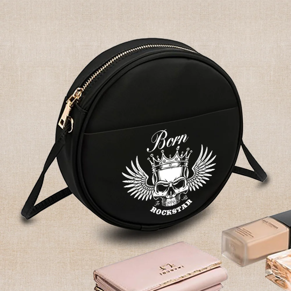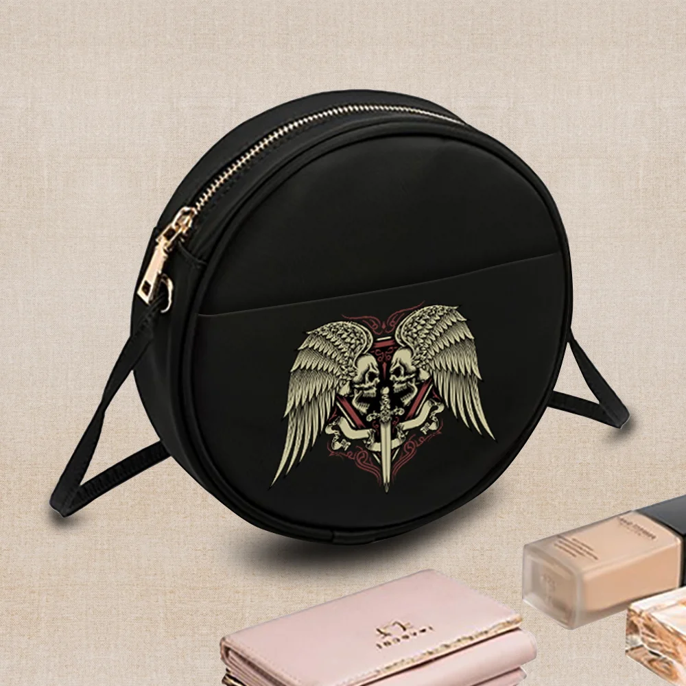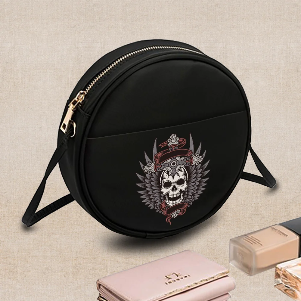 Circular Bags Woman Simple Handbag Outdoor Shopping Key Case Coin Purse Skull Print Shoulder Crossbody Cases Mini Round Bag
